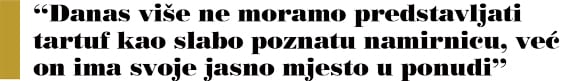 Prije 20 godina tartufi nisu uživali današnju popularnost čak ni u Istri, a sada su u ponudi svakoga istarskog restorana. Iz toga je razvidan naš rad i trud te naša stalna prisutnost na tržištu i ustrajnost u kvaliteti. Isti se trend zamjećuje na području cijele Hrvatske, doduše nešto sporije, te se može reći da svi bolji restorani na području Hrvatske nude barem jedno jelo od tartufa.