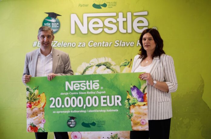 Povodom novog izdanja #BirajZeleno kompanija Nestlé, pokretač inicijative, donira 20.000 eura za opremanje kuharskog i slastičarskog kabineta Centra oštećenog u potresu 2020. godine, čime se omogućava daljnji razvoj i obrazovanje mladih s različitim vrstama komunikacijskih teškoća. “Ponosni smo na 20 godina odgovornog poslovanja kompanije Nestlé u Hrvatskoj, ali i na činjenicu da naša inicijativa #BirajZeleno raste, razvija se i iz godine u godinu obuhvaća sve više ljudi. To nam daje samopouzdanje i potvrđuje da smo na dobrom putu, a pogotovo kada nam se pridruže partneri kao što je Centar Slava Raškaj i chef Mario Mandarić, pobornik zero waste koncepta, s kojima dijelimo iste vrijednosti, potpuno smo predani smanjenju otpada od hrane i očuvanju okoliša za buduće generacije. Vjerujem da će kroz edukativne radionice chefa Mandarića budući kuhari Centra dobiti priliku da postanu nositelji promjena u svojim zajednicama, promovirajući zero food waste filozofiju i održive prakse. Nadalje, donacijom za opremanje kuharskog kabineta Centra želimo podržati obrazovanje i osposobljavanje mladih s komunikacijskim teškoćama, te im pružiti priliku za stjecanje važnih znanja i vještina”, rekao je Laurentiu-Florin Dimitriu, generalni direktor kompanije Nestlé za Hrvatsku, Sloveniju i BiH.