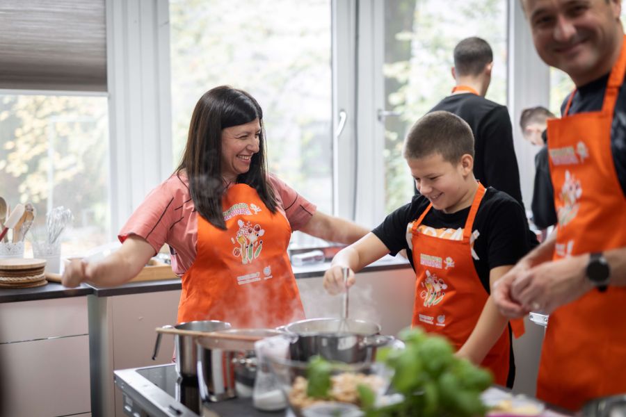 Ambasadori ovogodišnje kampanje, Slavica de Jong, Edin Mehmedović i Bruno Šimleša, pripremali su zdrave i ukusne obroke s okupljenim roditeljima i djecom