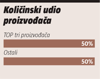 U grupi čokoladnih proizvoda prisutna je visoka razina koncentracije o čemu jasno govori podatak da se na vodeća tri proizvođača odnosi polovica prodanih količina na hrvatskom tržištu.