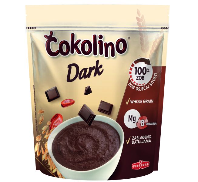 Čokolino Dark savršen je obrok za početak dana, a osim toga može biti odličan međuobrok koji ćete s lakoćom pripremiti i na poslu. Napravljen je od 100% zobenog brašna bogatog vlaknima, zaslađen isključivo datuljama i čokoladom te bogat kakaom. Upravo ti sastojci zaslužni su za puninu okusa ove dark kombinacije i osjećaj sitosti koji će vas dugo držati, a može se pripremiti s običnim ili biljnim napitkom.