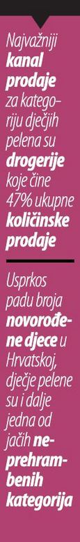 Najvažniji kanal prodaje za kategoriju dječjih pelena su drogerije koje čine 47% ukupne količinske prodaje i imaju zaista raznoliku ponudu.