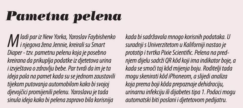 Dječje pelene danas postoje u različitim veličinama, dizajnu i sastavu te vrlo učinkovito odgovaraju na postavljen zadatak, a to je osigurati dječje intimno područje suhim sa što većom mogućnosti upijanja kako bi zadovoljile dječje fiziološke potrebe.