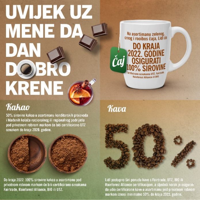 Lidl Hrvatska želi omogućiti svojim kupcima što veću mogućnost praćenja sljedivosti proizvoda, kako bi potrošači mogli informirano odlučivati o procesu kupnje, objavljeno je iz ovog trgovačkog lanca. “Lidl neprestano osluškuje potrebe potrošača i aktivno djeluje na njihovom ostvarenju. Upravo zato se obvezao na konkretne akcije u segmentu kakaa, kave i čaja – sigurati svojim proizvodima certifikate Fairtrade, Fairtrade Kakao program, Rainforest alliance, EU/BIO, UTZ i UEBT najkasnije do 2022. godine”, dodaje se u priopćenju.