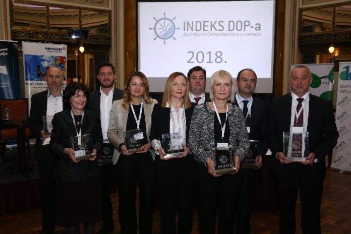 U organizaciji Hrvatske gospodarske komore i Hrvatskog poslovnog savjeta za održivi razvoj održana je jedanaesta dodjela nagrade Indeks DOP-a za najbolja postignuća u društveno odgovornom poslovanju.