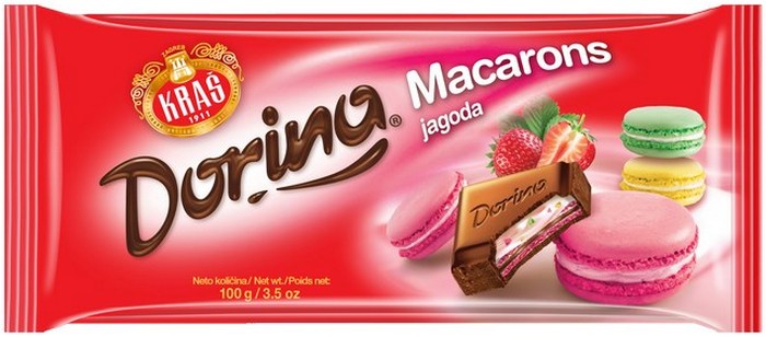 Kraševa paleta Dorina Macarons sastoji se od tri mliječne čokolade s dodatkom obojenog vafla i šarenih komadića macarona u kremi. Svaku kockicu Dorina čokolade čini kombinacija čokoladnog i mliječnog punjenja koja se stapa s tri okusa – jagodom, vanilijom ili pistacijom.