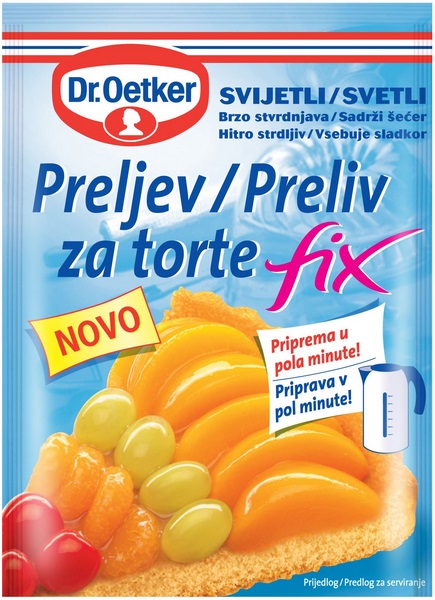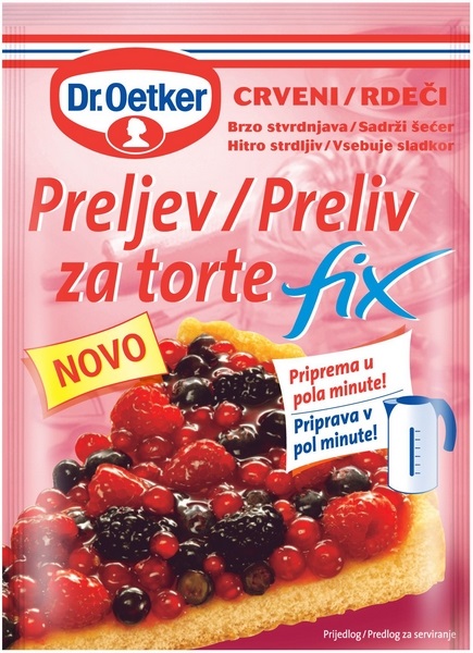 Dr. Oetker Preljevi za torte Fix dolaze u svijetloj i crvenoj varijanti, idealni za sezonu jagoda i raznog bobičastog voća, a mogu se pronaći u trgovinama po neobvezujućoj preporučenoj MPC cijeni od 5,69 kn.
