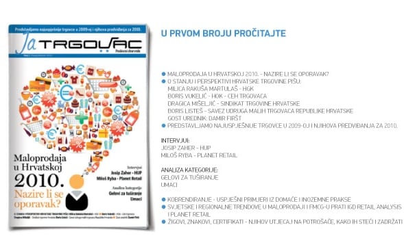 Portal Ja TRGOVAC u suradnji s Poslovnim dnevnikom pokreće mjesečni magazin o maloprodaji i industriji robe široke potrošnje. Magazin će se distribuirati kao prilog Poslovnom dnevniku te ciljano, sveukupno, na 12.000 adresa djelatnih osoba u spomenutim industrijama diljem Hrvatske. Prvi broj izlazi 13. 07.