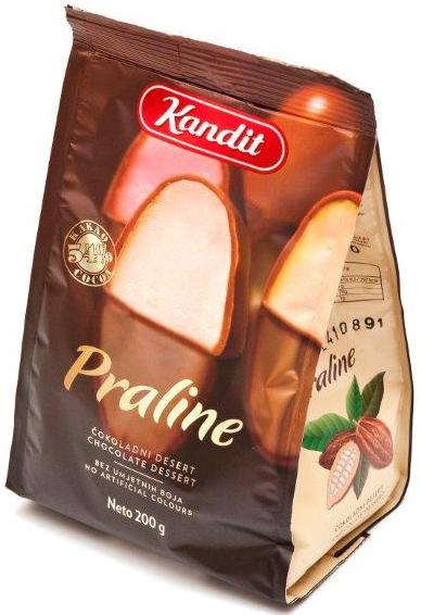 Sve Kandit Praline vrhunski su deserti od čokolade koja sadrži 54% kakaa i punjenja bez umjetnih boja. Ono po čemu se Kandit posebno ističe je dugogodišnja tradicija dražiranja jezgri, odnosno proizvodnje čokoladnih dražeja, gdje je pržena jezgra omotana mliječnom čokoladom. Trenutnu ponudu u ovoj grupi čine dvije vrste dražeja – lješnjak i badem.