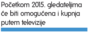 No, uskoro stiže i najznačajnija nadogradnja ovoga kanala. Naime, u prvom kvartalu 2015. godine gledateljima će, zahvaljujući razvoju e-shopping platforme, biti omogućena i kupnja putem televizije.