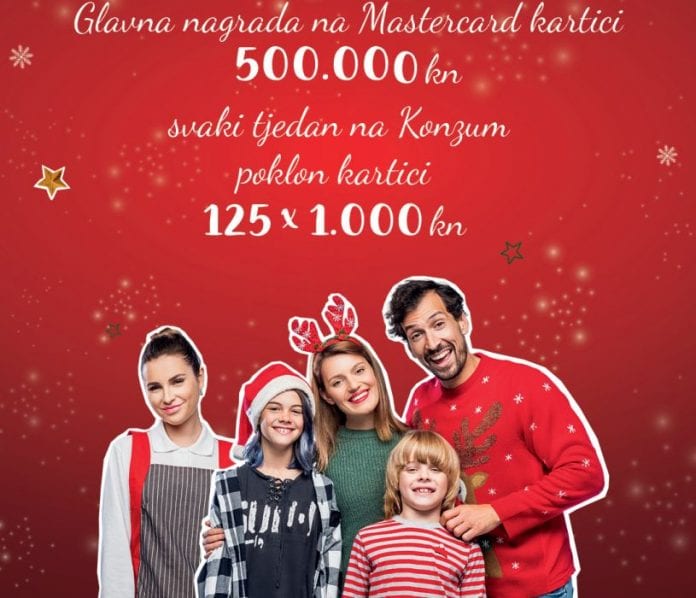 Čak milijun kuna vrijednost je nagradnog fonda koji će Konzum podijeliti najsretnijim kupcima u svojoj blagdanskoj nagradnoj igri sa sloganom “Darujemo milju za Božić u izobilju”. Ukupno će tako kroz četiri tjedna izvlačenja nagraditi 500 kupaca s iznosom od 1.000 kuna na Konzumovoj poklon-kartici, a u završnom će izvlačenju najsretniji kupac osvojiti 500.000 kuna na Mastercard potrošačkoj kartici.