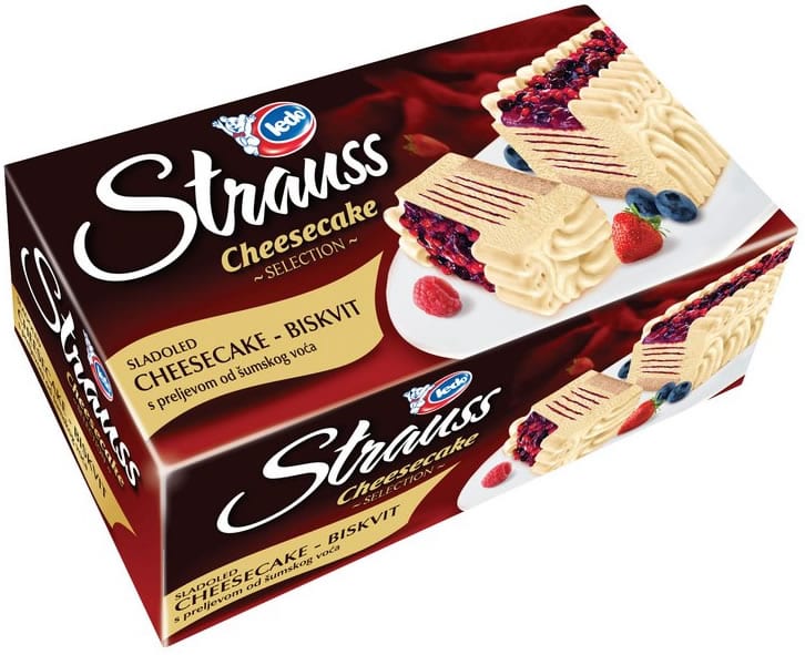Sladoledna rolada Strauss Selection Cheesecake s preljevom od šumskog voća, odličan je izbor za brz desert nakon obiteljskog ručka.