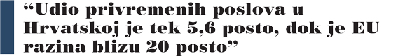 Kako bi predvidjeli trendove moramo biti svjesni nekoliko činjenica. Jedna od njih jest da je u Hrvatskoj udio radno aktivnog stanovništva u ukupnom broju radno sposobnih ispod prosjeka EU te da je kod nas udio privremenih poslova tek 5,6 posto, dok je EU razina blizu 20 posto.
