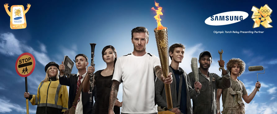 Samsung je stvorio niz uzbudljivih mogućnosti kako bi uključio što više ljudi u nezaboravan globalni doživljaj. Tradiciju sponzoriranja nosioca Olimpijskog plamena Samsung je započeo na Igrama u Ateni 2004. godine te nastavio preko igara u Torinu 2006. i Pekingu 2008., i sada u Londonu 2012. godine Olimpijski plamen stići će na tlo Velike Britanije 18. svibnja 2012. godine i tijekom 70 dana obići cijelu zemlju.