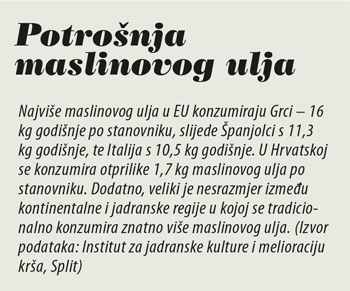 “Također, podrazumijeva se primjena suvremenih uređaja koji se mogu lako čistiti i prati (mlinovi, mjesilice i centrifuge od nehrđajućeg čelika). Djevičansko maslinovo ulje duže će očuvati svoju kvalitetu ako ga čuvamo zaštićeno od visokih temperatura (optimalno je 15 – 20 Celzijevih stupnjeva), od zraka (poželjno je otvorenu bocu potrošiti u roku od desetak dana) te od svjetlosti (dobro je birati ulje u bocama od tamno obojenog stakla ili u limenkama).” Stručnjaci naglašavaju kako (ekstra) djevičansko maslinovo ulje sadrži niz bioaktivnih tvari kao što su oleinska kiselina, tokoferoli, hidrofilni fenoli iz skupine sekoiridoida, skvalen ili steroli, koje mogu povoljno utjecati na fiziološke funkcije. “U pravilu se učinkovite količine ovih tvari mogu unijeti već s jednom do pet žlica ovog ulja u dnevnoj prehrani”, savjetuje dr. Koprivnjak.
