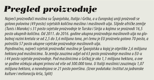 “Maslinarstvo je i u Hrvatskoj kultura od tradicijskog značenja, a arheološka istraživanja provedena u Vranjicu, nedaleko Splita, pokazala su kako se maslina u Dalmaciji uzgaja od 9. stoljeća”, objašnjava Marin Čagalj sa splitskog Instituta za jadranske kulture i melioraciju krša.