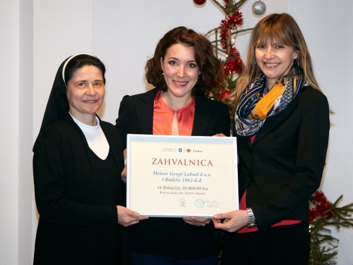 Uoči Božićnih blagdana Badel1862 i Meteor Grupa – Labud donirale su 20.000 kuna Caritasovoj Kući mladih ‘Da život imaju’ u kojoj svoj smještaj pronalaze mladi bez adekvatne roditeljske skrbi te studenti slabijeg imovinskog stanja koji nisu stekli pravo na studenski dom.