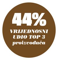 Kategorija u posljednjih godinu dana bilježi pad vrijednosne prodaje u odnosu na godinu ranije pri čemu ukupno 70% vrijednosne prodaje kategorije prolazi kroz moderne formate.