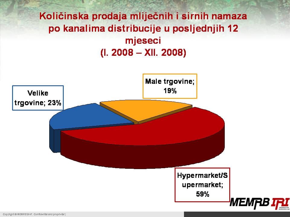 • Mliječni namazi se najviše kupuju u kanalu supermarketa i hipermarketa (trgovine s prodajnim prostorom iznad 200m2), zatim velike trgovine (trgovine s prodajnim prostorom između 50 do 199m2) i male trgovine (trgovine s prodajnim prostorom do 49m2).
