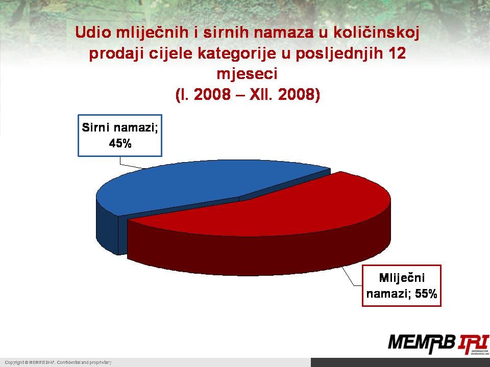 • U proteklih 12 mjeseci (zaključno s prosincem 2008.) MEMRB procjenjuje da je kroz kanale maloprodaje prodano oko 3 milijuna kg namaza, s ostvarenom dobiti od oko 153 milijuna kuna.