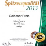 Njemački DLG, krovna europska organizacija za nezavisno testiranje i ocjenjivanje kvalitete prehrambenih proizvoda, na nedavno održanom ocjenjivanju mesnih prerađevina za 2013. godinu dodijelila je dvije zlatne medalje Gavrilovićevim trajnim salamama – Romani i Divini iz nove linije Di Giusto, izvijestili su iz Mesne industrije Gavrilović.