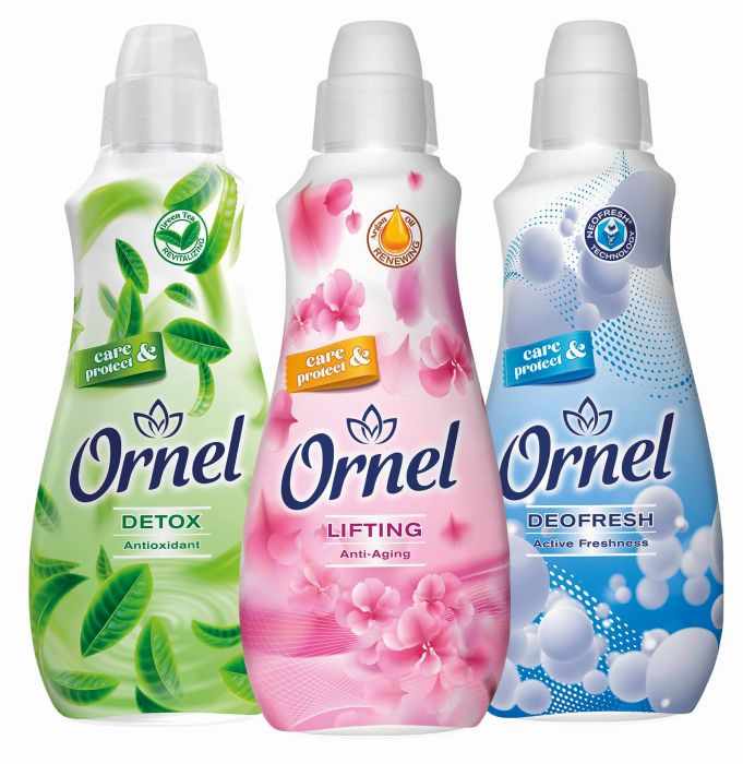 Ornel Lifting sadrži anti-age formulaciju koja prodire duboko između vlakana odjeće štiteći ih od oštećenja uzrokovanih pranjem. Njegujuće arganovo ulje hidratizira i hrani vlakna te ih tako održava u najboljem mogućem stanju. Ornel Detox je potpuni detox tretman odjeće, ljepota u boci koja vraća blistavost i elastičnost odjeće. Sadrži ekstrakt zelenog čaja koji štiti odjeću od oštećenja uzrokovanih pranjem, revitalizira vlakna odjeće čineći ju mekom i njegovanom. Ornel Deofresh posebno je kreiran za njegu sportske i sintetičke odjeće koja se pere na niskim temperaturama.