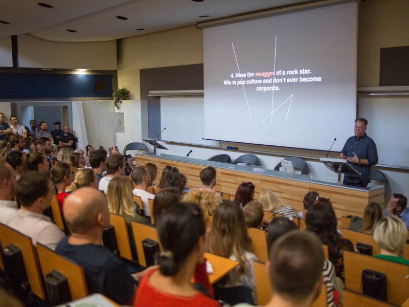 Tijekom predavanja pokazao je nekoliko primjera komunikacije kakvoj bi trebali težiti poput projekta Life Paint, spreja od kojih bicikli noću svijetle u mraku, a kojeg je napravio Volvo kako bi smanjio broj stradalih biciklista u noćnome prometu. Zatim Švedski broj kojim se promovirala Švedska kao turistička destinacija tako što su kreirali jedinstveni broj telefona na koji se uvijek javio neki drugi građanin Švedske s kojim se moglo porazgovarati o njihovoj zemlji. Jedan od primjera bila je PayPhone Bank kojom je Une telekom u Kolumbiji, koristeći svoje stare telefonske govornice, omogućio tisućama siromašnih građana koji si nisu mogli priuštiti bankovni račun da putem govornica štede s kovanicama.