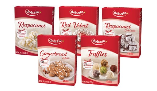 Dolcela Red Velvet je poznata svjetska slastica u prepoznatljivoj crvenoj boji u kombinaciji s bijelom kremom. Pakiranje sadrži mješavinu za biskvit i mješavinu za kremu. A svaki stol je slađi kada se na njemu nađu ukusni Dolcela Raspucanci. Obožavatelje jednostavnih i citrusom prošaranih okusa oduševit će raspucanci s aromom limuna. Dolcela Gingerbread keksići sadrže šablonu otisnutu na ambalaži. Osim toga, tu je i glazura za ukrašavanje zahvaljujući kojoj će vaši keksići biti glavna zvijezda božićnog stola.