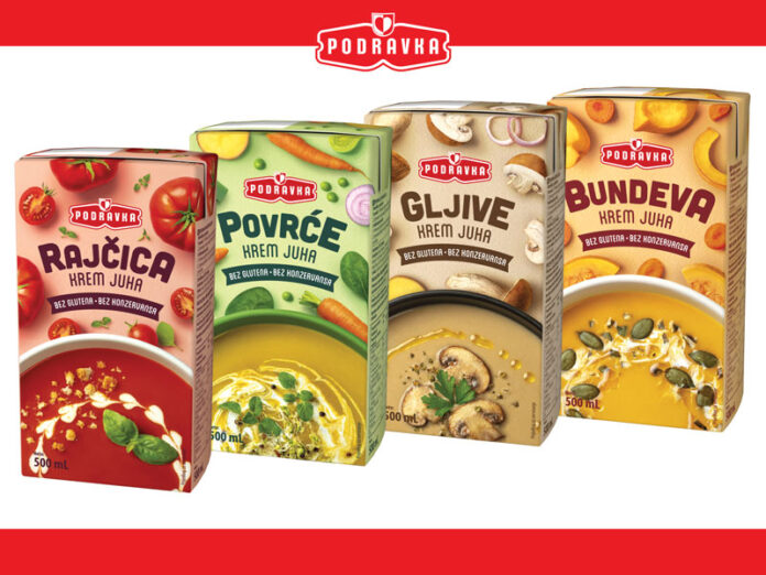 Nove Podravka gotove juhe gotovo su rješenje za brz i kvalitetan obrok, pun povrća. Na sreću svih ljubitelja krem juha, dolaze u četiri neodoljiva okusa: bundeva, rajčica, gljive i povrće. Za uživanje u vrhunskom okusu sve što treba učiniti jest podgrijati ih, a praktično pakiranje osigurava jednostavnu pohranu i čuva svježinu proizvoda. Za one kreativnije koji se žele poigrati serviranjem, moguće je dodati komadiće kruha, zdrave sjemenke ili nešto što će ovu neodoljivu juhu dodatno obogatiti. Bogat okus, nutritivna hranjivost, praktičnost i ušteda vremena prednosti su u izboru novih Podravka gotovih juha.