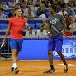 Glavne zvijezde egzibicije, teniski showman Gael Monfils, David Goffin, Borna Ćorić i Ivan Dodig, ispucavali su loptice u gledalište, a izazov je bio uhvatiti one označene srcem.