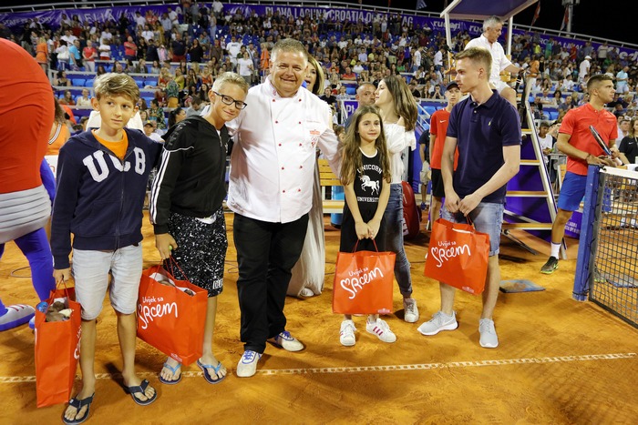 Podravkini promotori kulinarstva tijekom meča pripremali su ukusne delicije te je tako publika imala priliku uživati u dvostrukom zadovoljstvu – egzibicijskom tenisu i ukusnim zalogajima.