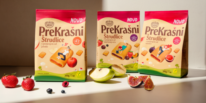Zapravo, PreKrašne Štrudlice jako su dobro, novo, društvo PreKrašnim kolačićima. Sočan spoj punjenja, od visokih 43 posto bez obzira na okus, obavijen prhkim tijestom tvori slasticu koja će vas ovo ljeto oduševiti. I još nešto, Kraševe štrudlice ponosno nose oznaku VEGAN V-Label pa su odličan izbor za vegane i sve koji preferiraju biljnu prehranu.