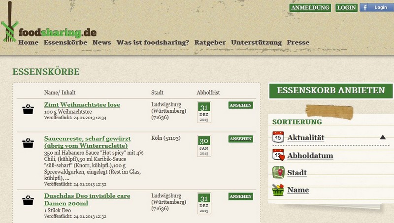 Gomile životnih namirnica svakodnevno završavaju u smeću. Internet platforma foodsharing.de korisnicima nudi da poklone svoj višak onome tko to treba. Odaziv je u najkraćem vremenu već velik