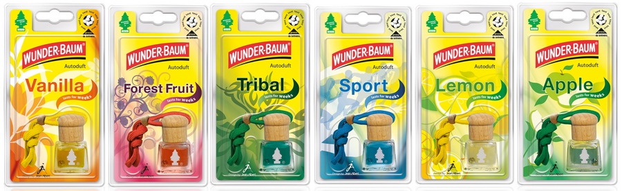Velika novost u kategoriji su Wunder-Baum bočice, osvježivači zraka u bočici s jedinstvenim sustavom raspršivanja mirisa gdje ‘uzica kroz čep’ služi kao fitilj za efikasnu distribuciju mirisa. Liniju čini šest mirisa, a kupcu pri odluci može pomoći ‘stisni i pomiriši’ mirisni tester na svakom proizvodu.