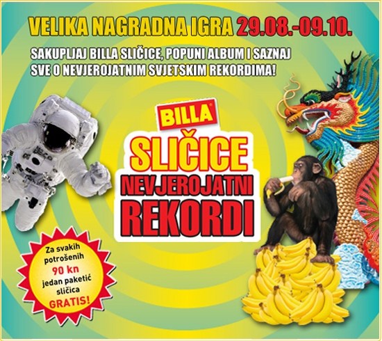 Za svakih potrošenih 90 kn u Billi kupac na blagajni dobiva gratis vrećicu s pet sličica koje se lijepe u album “Nevjerojatni rekordi”.