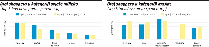 Kategorija svježeg mlijeka pala je količinski i vrijednosno jer je izgubila čak 150 tisuća shoppera u svega 12 mjeseci, dok je maslac istodobno zabilježio rast broja shoppera u zadnjem MAT razdoblju.
