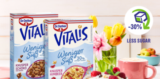 Kako bi bio u korak s ciljevima povelje i trendovima zdrave prehrane, Dr. Oetker je u svojim proizvodima smanjio prosječni sadržaj šećera. Vitalis Hrskavi...