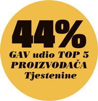 Prema drugom parametru, ostvarenoj bruto oglasnoj vrijednosti, na prvom je mjestu Barilla s 15% udjela u oba godišnja perioda, a nepromijenjen udio imao je i drugoplasirani Marodi s 11% kao i trećeplasirana Ragusa s 8%. Iza njih dolaze Koleda sa 6%, Žito s 4% i Klara Marić s 3% udjela u GAV-u. Ostali proizvođači u malom su padu s ranijih 26% na sadašnjih 23% udjela u GAV-u, dok je privatna robna marka za isto toliko rasla te sada ima značajnih 30% udjela prema ovom parametru.