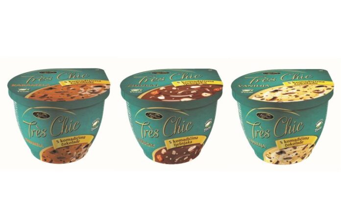 Mliječne Très chic deserte na bazi pudinga karakteriziraju pomno odabrani sastojci i visoki udio kakaa i čokolade. Uz postojeće okuse duple čokolade, prálina & tamne čokolade te pudinga kave & šlaga, od danas su na policama trgovina diljem Hrvatske dostupna tri nova okusa: Très chic vanilija s komadićima čokolade, nougat s komadićima lješnjaka te karamela s komadićima čokolade.