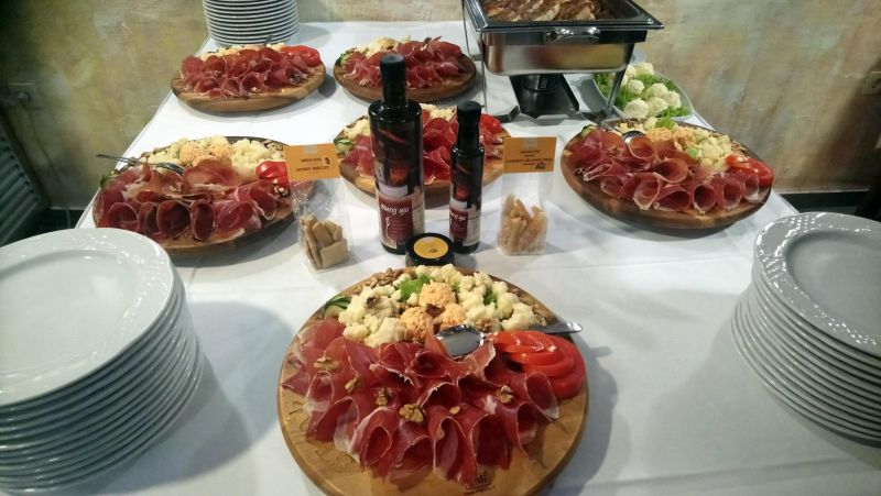 Novinare je kao dobrodošlica dočekalo osvježenje u vidu pjenušavog koktela, provjerene kombinacije Aure iz Buzeta: Gin Karbun-Tonic-Teranino. Iz ove destilerije posluženi su i aperitivi Pelinkovac i Šljivovica, koje su neki, pak, radije pili na kraju kao dižestive, jer i tako dobro funkcioniraju. Welcome zalogajčići bili su više ‘na ruku’ (finger food) nego na žlicu: trljanica (salata od sira i paprika) i mazalice s kajmakom te pršut i sir iz mišine uz poneku kap maslinova ulja iz Muzeja uja iz Škripa na Braču, koji je sa suprugom Katjom osnovao Zagrepčanin Krunoslav Cukrov.