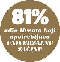 Ukupno 81% Hrvata u posljednjih je godinu dana upotrebljavalo univerzalne začine, dok ih je 77% upotrebljavalo pojedinačne začine. Pogledamo li učestalost upotrebe u obje je kategorije najviše umjerenih (medium) korisnika, odnosno onih koji začine upotrebljavaju dva do tri puta tjedno. U kategoriji univerzalnih začina prva tri mjesta zauzimaju Vegeta, Kotanyi i Šafram, dok u kategoriji pojedinačnih začina prva tri mjesta drže Kotanyi, Franck i Šafram. Reklame su izuzetno važna stavka u procesu prodaje proizvoda i usluga pa su tako korisnici u obje kategorije u posljednjih tjedan dana reklame najviše vidjeli/čuli na televiziji, internetu, te reklame na ulici.