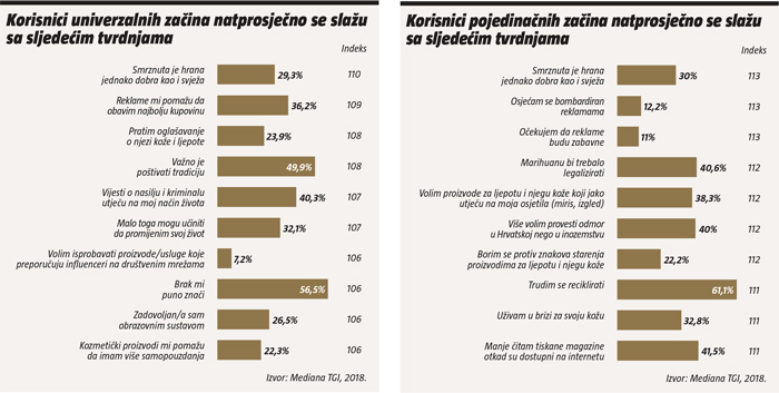 Korisnici univerzalnih začina su tradicionalisti koji prate oglašavanje, nisu skloni promjenama u životu, ali vole isprobati proizvode na preporuku influencera, dok su korisnici pojedinačnih začina osobe koje brinu o svom izgledu, domoljubi, te osobe koje ne vole reklame.