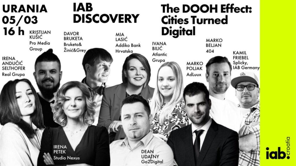 Edukativni projekt IAB-a Croatia IAB Discovery nakon prva tri izdanja posvećena pažnji korisnika, natjecanju MIXX Awards Croatia i digitalnom leadershipu, u ožujku u fokus stavlja digitalno vanjsko oglašavanje (DOOH). The Month of DOOH posvećen je istraživanju i promociji digitalnog vanjskog oglašavanja u Hrvatskoj, a njegovo će središnje događanje biti okupljanje koje će se održati 5. ožujka u 16 sati u zagrebačkoj Uraniji.