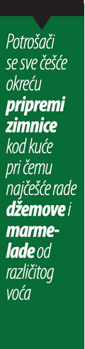 Kao i u drugim slatkim kategorijama, u kategoriji zimnice prisutan je trend smanjenja šećera te sadržaj većih komadića voća. Još jedan proizvođač – saveznik u pripremi domaće zimnice je Kotanyi koji sa svojim brojnim začinima uvelike olakšava i zaokružuje okus domaće zimnice.