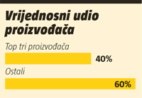 U cjelokupnoj 2025. godini vodeća tri proizvođača zastupala su ukupno 40,3% vrijednosne prodaje kategorije žitarica za doručak. Abecednim redoslijedom to su: Mogador, Nestle i Podravka. Uz to, bitan udio u prodaji kategorije predstavljaju i proizvodi privatnih robnih marki.
