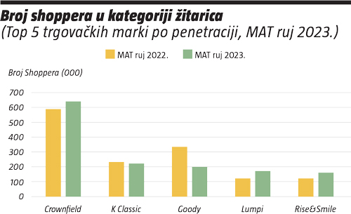 Tri od četiri kućanstva u Hrvatskoj kupuju žitarice za doručak. Kategorija je u posljednjih godinu dana (MAT rujan 2023.) vrijednosno rasla, iako je količinski stagnirala. Pritom je važno naglasiti kako čak 87% kupaca kategorije kupuje trgovačke marke.